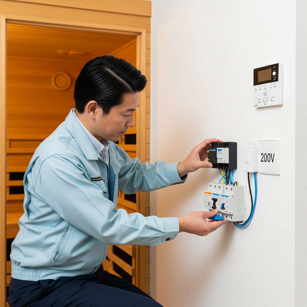 「うちは200Vのコンセントがあるから大丈夫」と考えるのは、実は危険です。サウナは非常に大きな電力を安定して使い続けるため、他の家電製品と同じ回路から電源を取ると、ブレーカーが落ちる原因になります。安全に使うためには、分電盤からサウNAのためだけの「専用回路」を引く電気工事が、ほぼ全ての場合で必要になるとお考えください。これは、安全に関わる最も重要なポイントです。