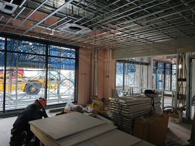 設計会社やデザイン事務所との協働にも柔軟に対応しており、現場調査や施工図面の確認を通して、イメージ通りの仕上がりを確保。開放感を重視した空間でも、配線やスプリンクラーなどの設備が美しく見えるよう、細部まで丁寧に施工します。
